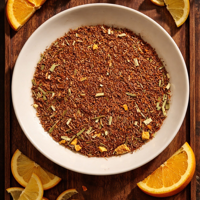 OverzichtEen rooibos met frisse sinaasappel en bergamot.