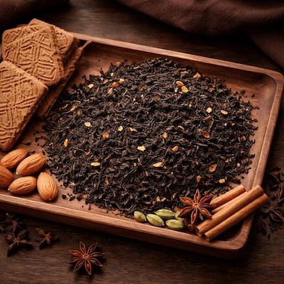 | Ingrediënten | Zwarte thee, amandel, kaneel, kruidnagel, kardemom, anijs, citrusschil, vanille, aroma |